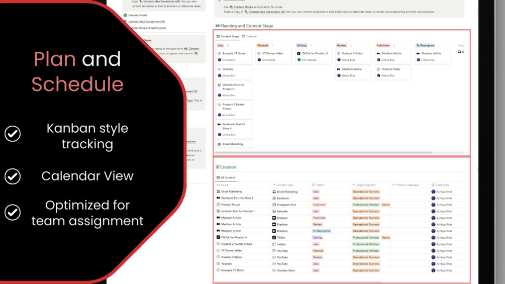 Contains 8 pre-built content templates + calendar, database and Kanban views to get your started in a minute!